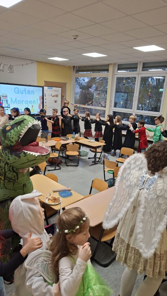 In den Klassen wurde gemeinsam gefeiert, gespielt und gelacht. Natürlich durfte auch die traditionelle Polonaise durch das Schulgebäude nicht fehlen – eine fröhliche Schlange aus kostümierten Kindern und Lehrkräften zog durch die Flure und sorgte überall für gute Stimmung.
